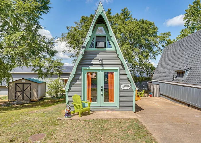 Nur 3 km vom Dogwood Canyon Naturpark entfernt, lädt die Cozy Cabin With Deck And Boat Launch Access In Lampe! Gäste zum Entspannen auf einer Terrasse ein.